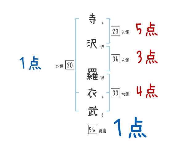 寺沢羅衣武さんの画数の鑑定結果