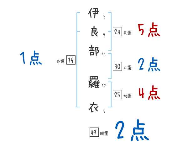 伊良部羅衣さんの画数の鑑定結果