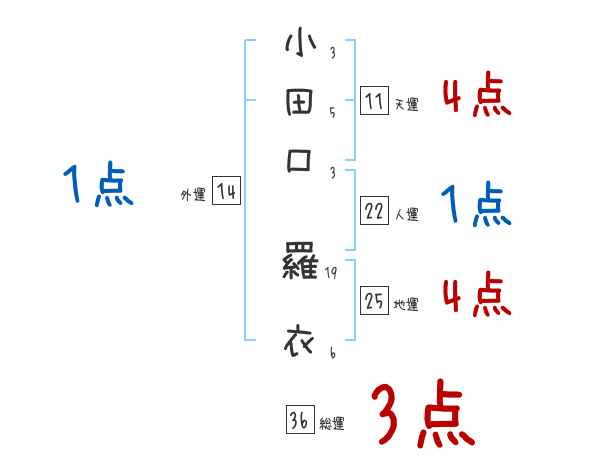 総運![]() | 小田口羅衣さんの総運は36画の3つ星!先見性が豊かです。多少神経質で苦労することも。 あなたの人生を表す1番重要な運勢です。生涯を通じて影響する総合運となり、主に50歳以降の晩年期に影響を及ぼします。 |