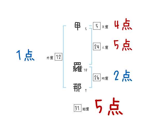 甲羅那さんの画数の鑑定結果
