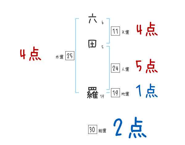 天運![]() | 六田羅さんの天運は11画の4つ星!着実に富や地位を得る幸運な人生。 家系が持つ宿命的な運勢を表します。祖先から受け継いだ苗字ですので自分の力が及びません。家柄を象徴します。 |