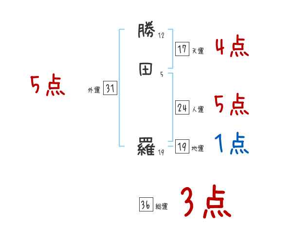 勝田羅さんの画数の鑑定結果