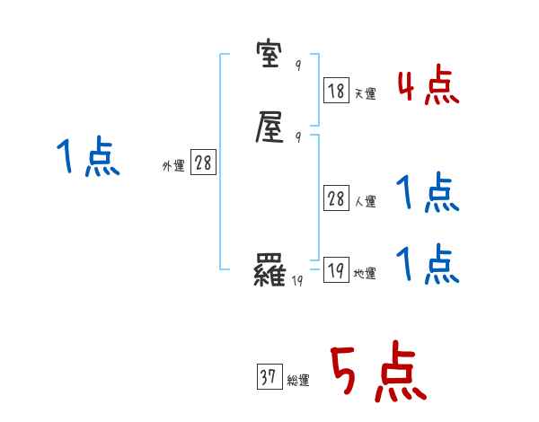 室屋羅さんの画数の鑑定結果