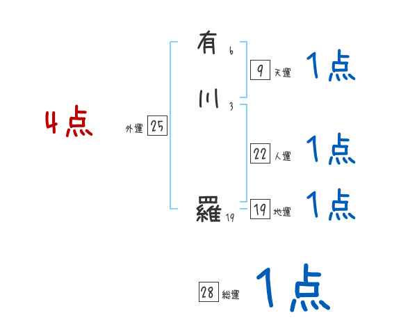 総運![]() | 有川羅さんの総運は28画の1つ星!家庭環境に注意。スポーツで活躍できる能力があるかも。 あなたの人生を表す1番重要な運勢です。生涯を通じて影響する総合運となり、主に50歳以降の晩年期に影響を及ぼします。 |