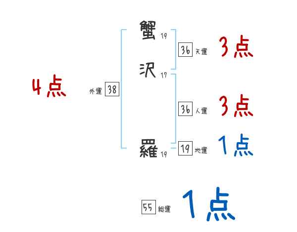 蟹沢羅さんの画数の鑑定結果