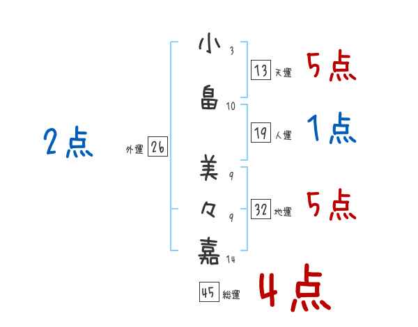 外運![]() | 小畠美々嘉さんの外運は26画の2つ星!波瀾万丈かも。信頼できる人を大事にしましょう。 生活面を象徴する運勢です。外部から受ける影響力を表し、結婚運、家庭運や職場、環境への順応性を表します。 |