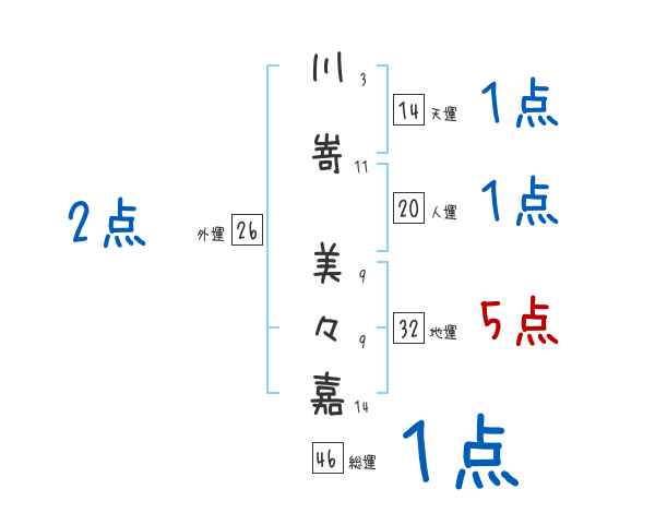 川嵜美々嘉さんの画数の鑑定結果