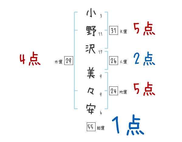 小野沢美々安さんの画数の鑑定結果
