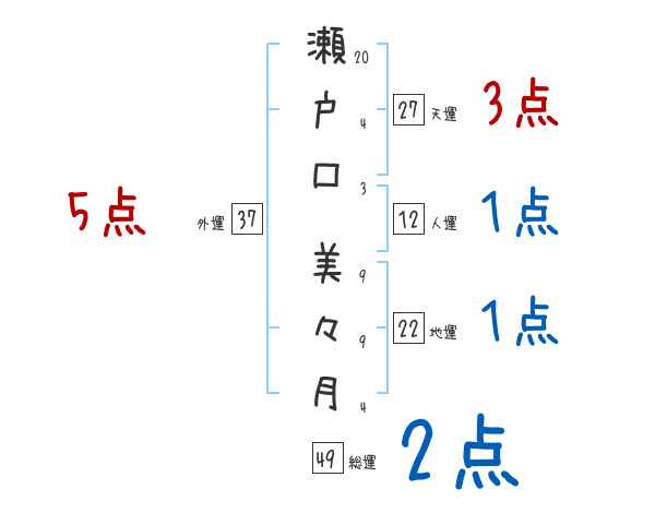 瀬戸口美々月さんの画数の鑑定結果