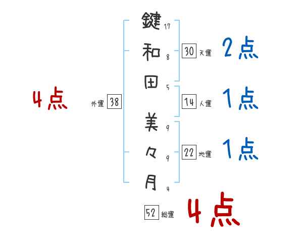 鍵和田美々月さんの画数の鑑定結果