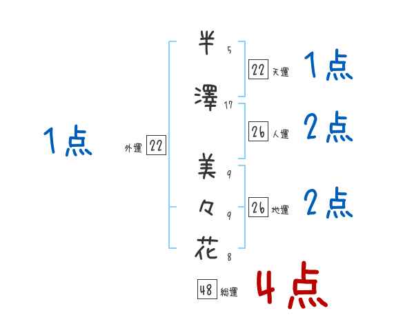 外運![]() | 半澤美々花さんの外運は22画の1つ星!努力することが苦手ないっぽう手先が器用。芸術性にも優れる。 生活面を象徴する運勢です。外部から受ける影響力を表し、結婚運、家庭運や職場、環境への順応性を表します。 |