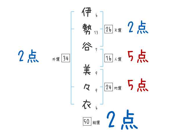 天運![]() | 伊勢谷美々衣さんの天運は26画の2つ星!波瀾万丈かも。信頼できる人を大事にしましょう。 家系が持つ宿命的な運勢を表します。祖先から受け継いだ苗字ですので自分の力が及びません。家柄を象徴します。 |