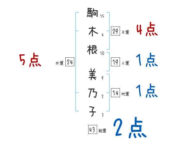 天運![]() | 駒木根美乃子さんの天運は29画の4つ星!完全主義で才能がある。厳格な心の持ち主。 家系が持つ宿命的な運勢を表します。祖先から受け継いだ苗字ですので自分の力が及びません。家柄を象徴します。 |