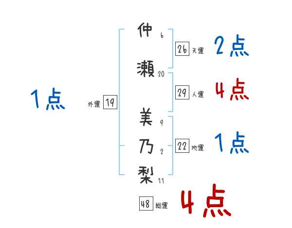 外運![]() | 仲瀬美乃梨さんの外運は19画の1つ星!優れた才能を持ちますが、協調性が足りないことも。周りの人と協力する事を意識しましょう。 生活面を象徴する運勢です。外部から受ける影響力を表し、結婚運、家庭運や職場、環境への順応性を表します。 |