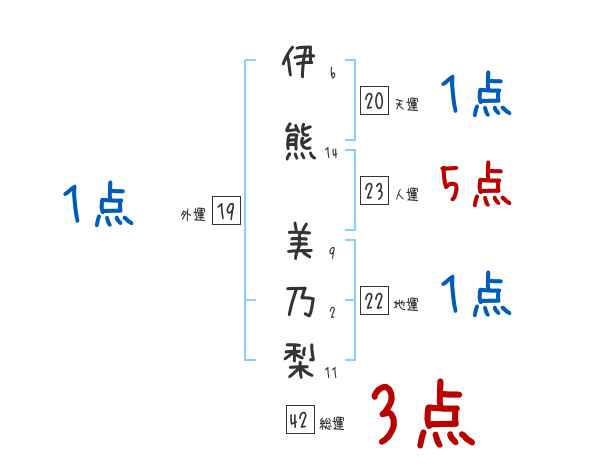 外運![]() | 伊熊美乃梨さんの外運は19画の1つ星!優れた才能を持ちますが、協調性が足りないことも。周りの人と協力する事を意識しましょう。 生活面を象徴する運勢です。外部から受ける影響力を表し、結婚運、家庭運や職場、環境への順応性を表します。 |