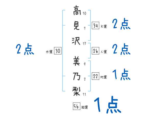 高見沢美乃梨さんの画数の鑑定結果