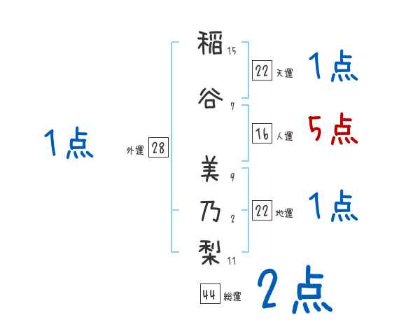 稲谷美乃梨さんの画数の鑑定結果