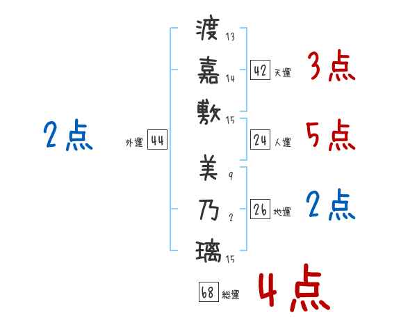 渡嘉敷美乃璃さんの画数の鑑定結果