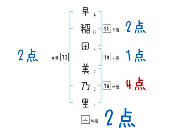 天運![]() | 早稲田美乃里さんの天運は26画の2つ星!波瀾万丈かも。信頼できる人を大事にしましょう。 家系が持つ宿命的な運勢を表します。祖先から受け継いだ苗字ですので自分の力が及びません。家柄を象徴します。 |
