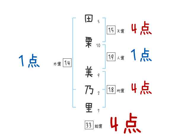天運![]() | 田栗美乃里さんの天運は15画の4つ星!人徳があり出世する。順調に物事を進め円満な人生。 家系が持つ宿命的な運勢を表します。祖先から受け継いだ苗字ですので自分の力が及びません。家柄を象徴します。 |
