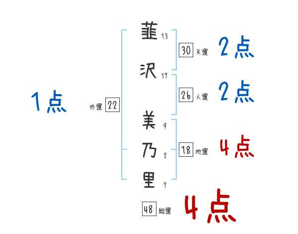 外運![]() | 韮沢美乃里さんの外運は22画の1つ星!努力することが苦手ないっぽう手先が器用。芸術性にも優れる。 生活面を象徴する運勢です。外部から受ける影響力を表し、結婚運、家庭運や職場、環境への順応性を表します。 |