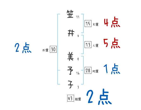 外運![]() | 笠井美予子さんの外運は30画の2つ星!浮き沈みの激しさに注意しましょう。 生活面を象徴する運勢です。外部から受ける影響力を表し、結婚運、家庭運や職場、環境への順応性を表します。 |
