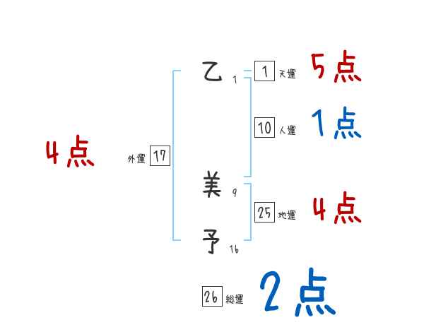 乙美予さんの画数の鑑定結果