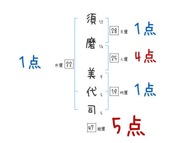 須磨美代司さんの画数の鑑定結果