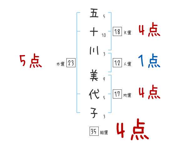 五十川美代子さんの画数の鑑定結果