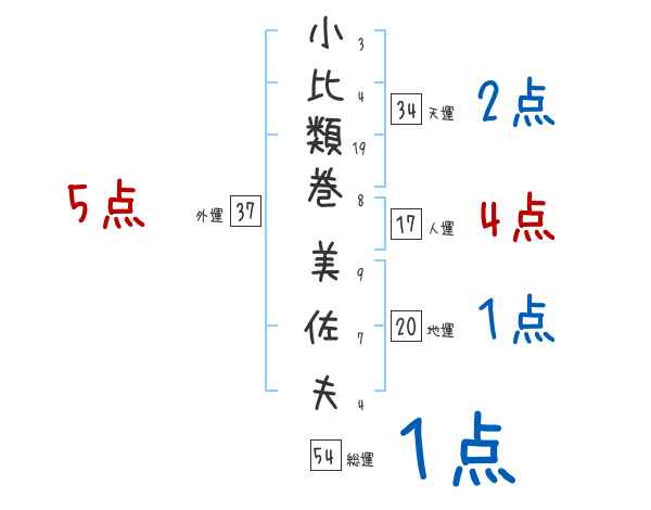 小比類巻美佐夫さんの画数の鑑定結果