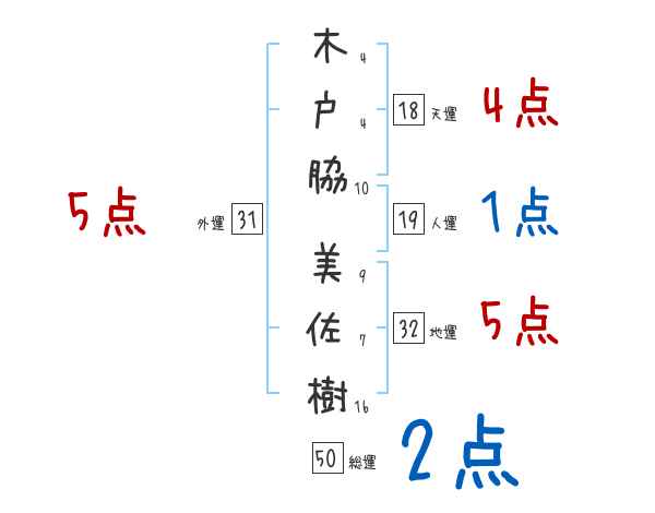 外運![]() | 木戸脇美佐樹さんの外運は31画の5つ星!社交性があり判断力に優れる。順風満帆な人生で円満な生活。 生活面を象徴する運勢です。外部から受ける影響力を表し、結婚運、家庭運や職場、環境への順応性を表します。 |