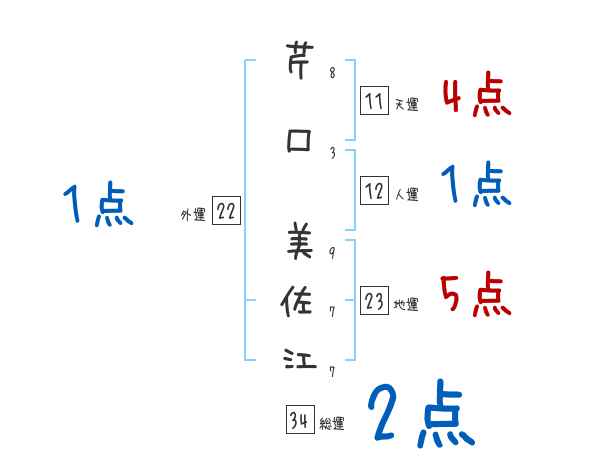 芹口美佐江さんの画数の鑑定結果
