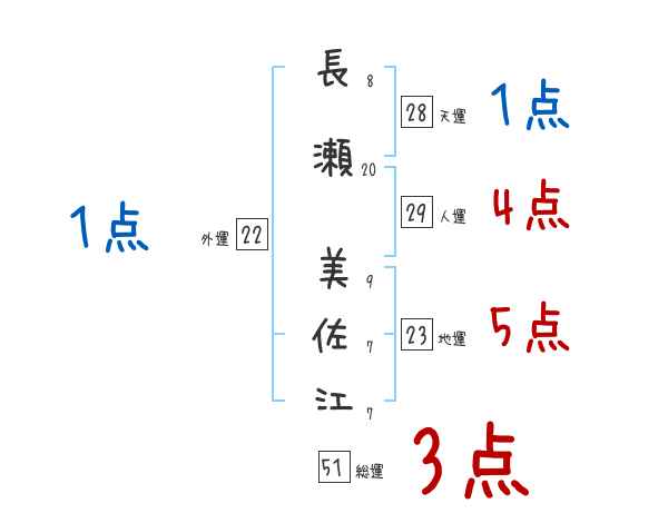 天運![]() | 長瀬美佐江さんの天運は28画の1つ星!家庭環境に注意。スポーツで活躍できる能力があるかも。 家系が持つ宿命的な運勢を表します。祖先から受け継いだ苗字ですので自分の力が及びません。家柄を象徴します。 |