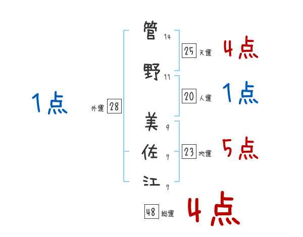 外運![]() | 管野美佐江さんの外運は28画の1つ星!家庭環境に注意。スポーツで活躍できる能力があるかも。 生活面を象徴する運勢です。外部から受ける影響力を表し、結婚運、家庭運や職場、環境への順応性を表します。 |