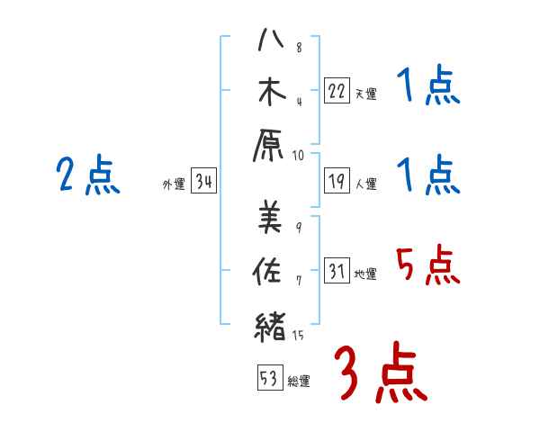 八木原美佐緒さんの画数の鑑定結果