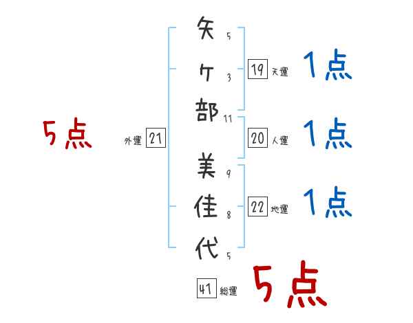 外運![]() | 矢ヶ部美佳代さんの外運は21画の5つ星!統率力がある。独立し成功する。名誉を手に入れる。 生活面を象徴する運勢です。外部から受ける影響力を表し、結婚運、家庭運や職場、環境への順応性を表します。 |