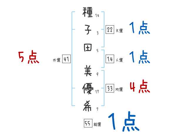 種子田美優希さんの画数の鑑定結果
