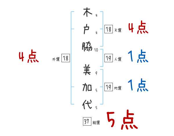 天運![]() | 木戸脇美加代さんの天運は18画の4つ星!情熱的で剛気。忍耐力があり信頼される。 家系が持つ宿命的な運勢を表します。祖先から受け継いだ苗字ですので自分の力が及びません。家柄を象徴します。 |