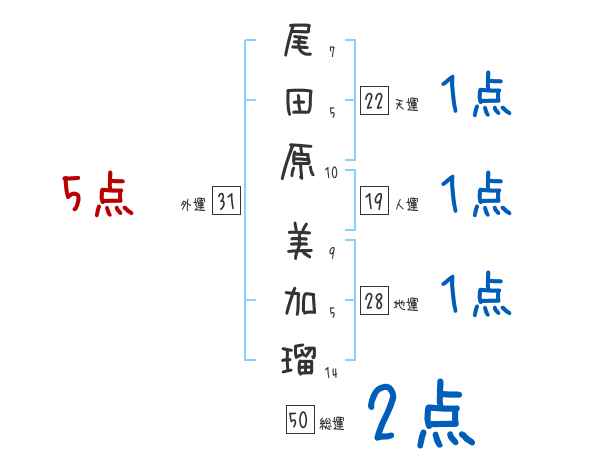 尾田原美加瑠さんの画数の鑑定結果