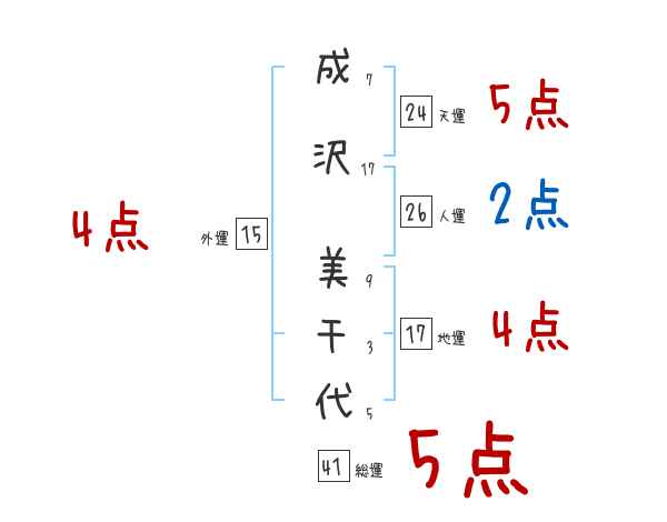天運![]() | 成沢美千代さんの天運は24画の5つ星!家庭運が良く順調な人生。金運にも恵まれる。 家系が持つ宿命的な運勢を表します。祖先から受け継いだ苗字ですので自分の力が及びません。家柄を象徴します。 |