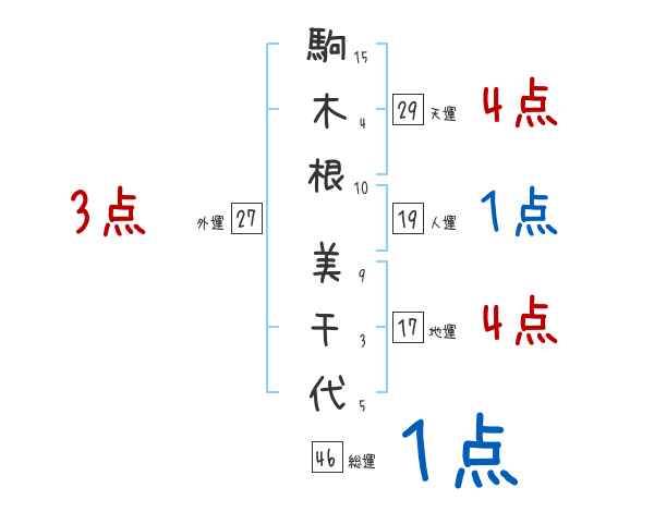 駒木根美千代さんの画数の鑑定結果