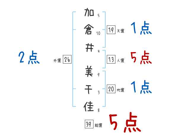 加倉井美千佳さんの画数の鑑定結果