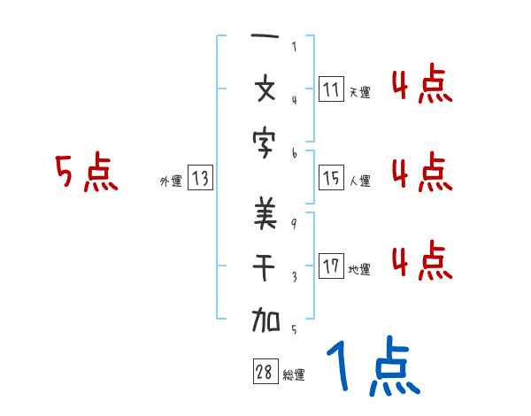 一文字美千加さんの画数の鑑定結果