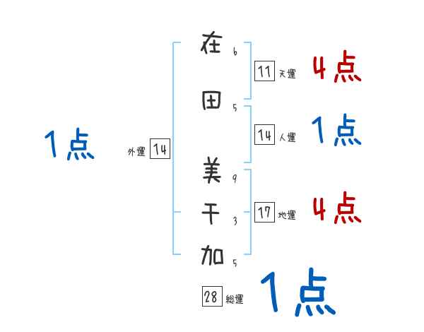 在田美千加さんの画数の鑑定結果