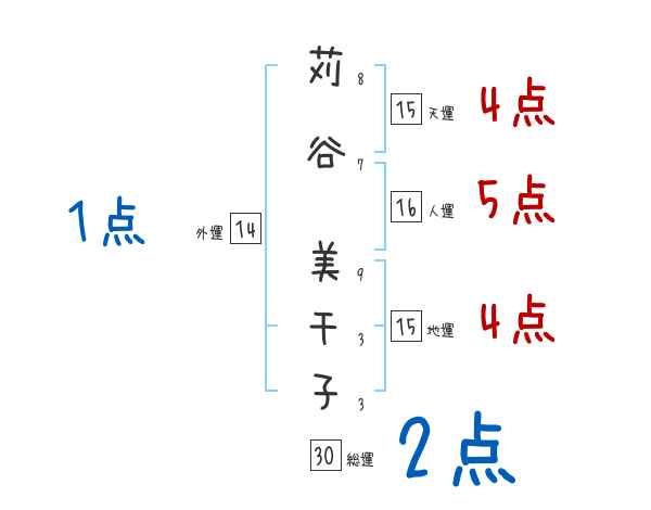 苅谷美千子さんの画数の鑑定結果