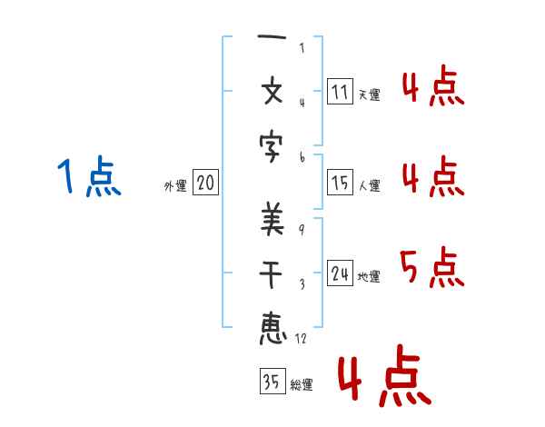 一文字美千恵さんの画数の鑑定結果