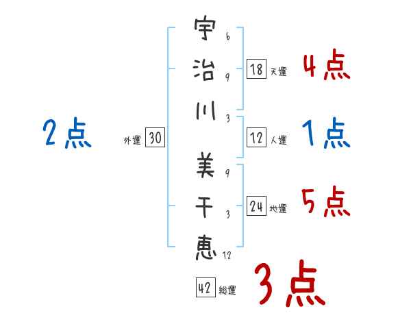 宇治川美千恵さんの画数の鑑定結果