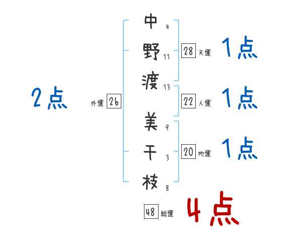天運![]() | 中野渡美千枝さんの天運は28画の1つ星!家庭環境に注意。スポーツで活躍できる能力があるかも。 家系が持つ宿命的な運勢を表します。祖先から受け継いだ苗字ですので自分の力が及びません。家柄を象徴します。 |
