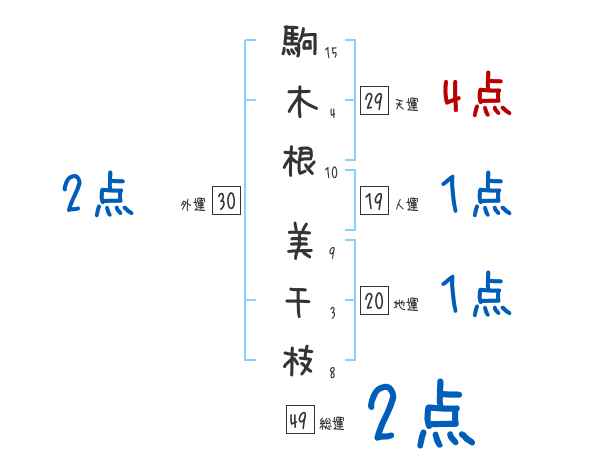 駒木根美千枝さんの画数の鑑定結果
