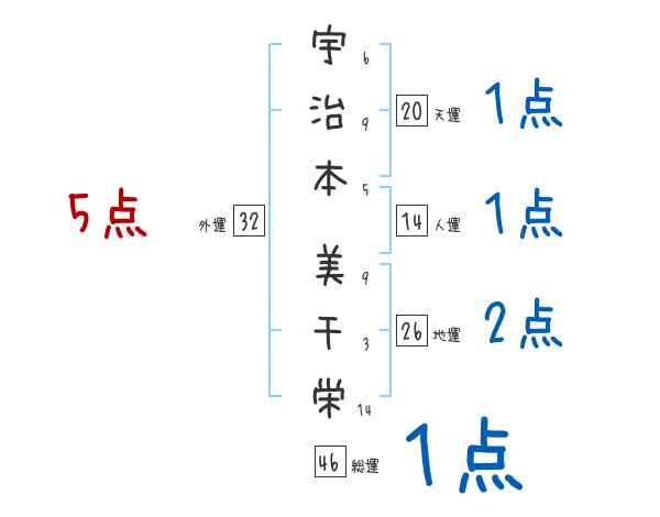 宇治本美千栄さんの画数の鑑定結果